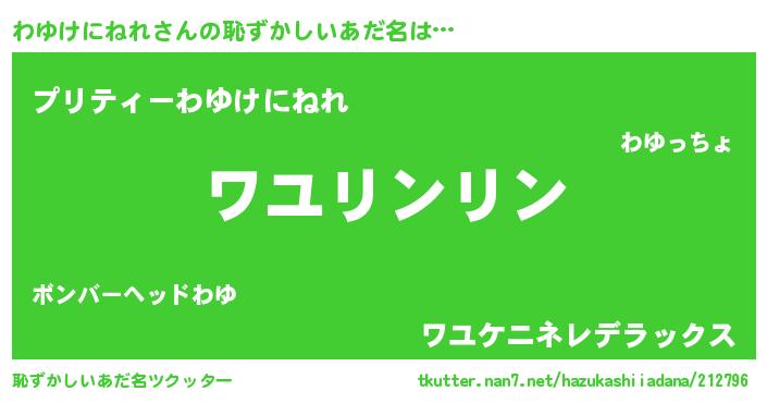 | 意味不明あだ名 | 『とにかく怪しいわゆけにねれ』 |