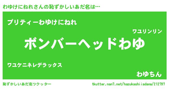 | 女子向けラノベタイトル風あだ名 | 『わゆけにねれ恋絵巻』 |