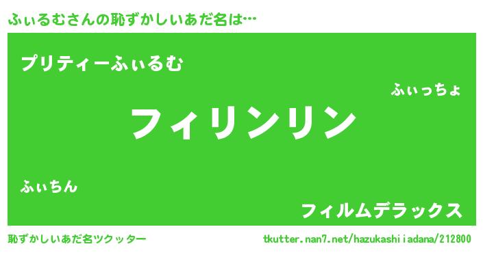 | ポケモン風あだ名 | 『ヒフィルム』『フィチュウ』 |