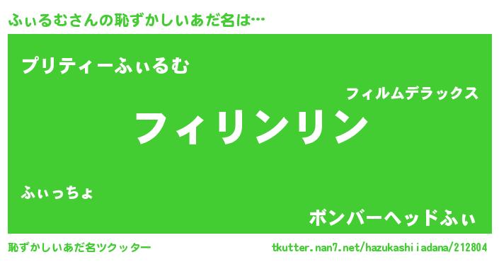 | 男性向けラノベタイトル風あだ名 | 『緋弾のフィルム』『魔弾の王とふぃるむ』 |