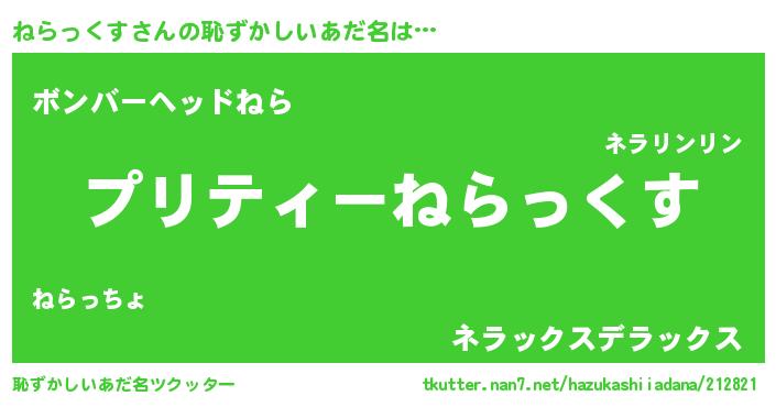 | 意味不明あだ名 | 『ペロリンねらっくす』『自称ねらっくす』 |