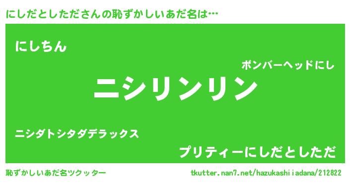| ヘコむあだ名 | 『にしっぺ』『にしだとしただ(笑)』 |