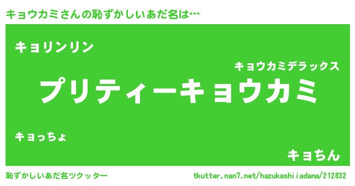 | 意味不明あだ名 | 『ペロリンキョウカミ』『自称キョウカミ』 |