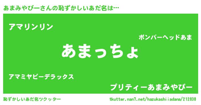 | 欧米人風あだ名 | 『あまみやぴークリステル』 |