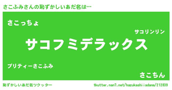 | ヘコむあだ名 | 『つくし』『さこふみ(遠い目)』 |