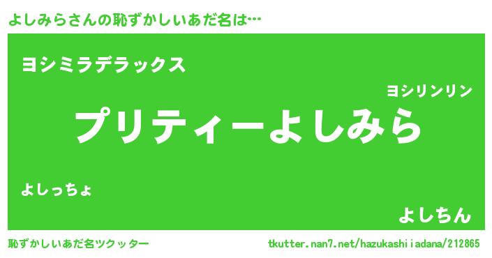 | 意味不明あだ名 | 『ヨモギ科よしみら属』『自称よしみら』 |