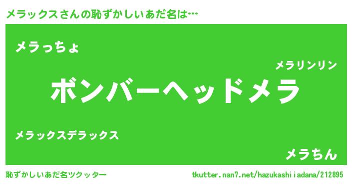 | ヒーロー風カッコイイあだ名 | 『慈愛の使者メラックス』『仮面メラダー』 |