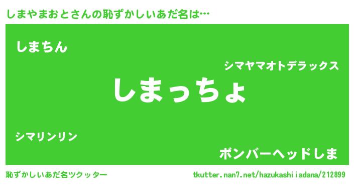 | 意味不明あだ名 | 『住所不定無職しまやまおと(40歳)』 |