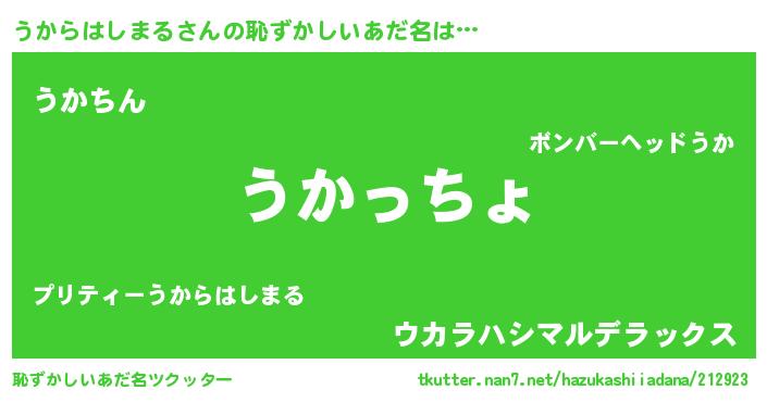 | ポケモン風あだ名 | 『ウカラダネ』『ウカキング』 |