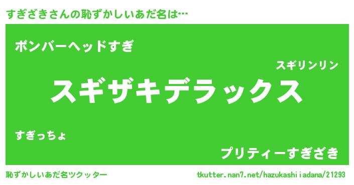 | 男性向けラノベタイトル風あだ名 | 『この素晴らしい世界にすぎざきを!』 |