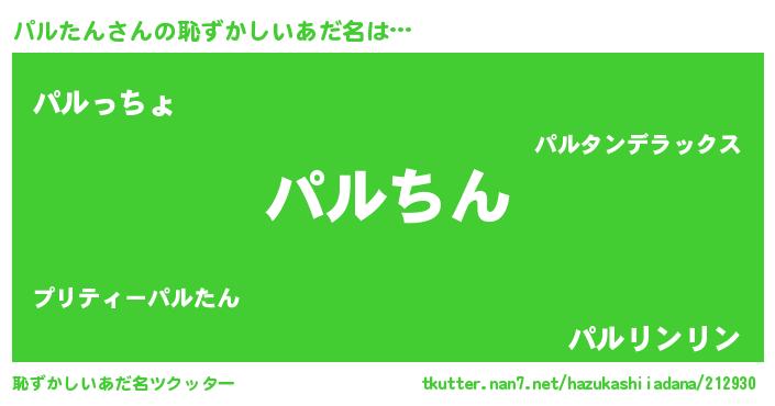 | 意味不明あだ名 | 『永久保存パルたん』『ニラ科パルたん属』 |