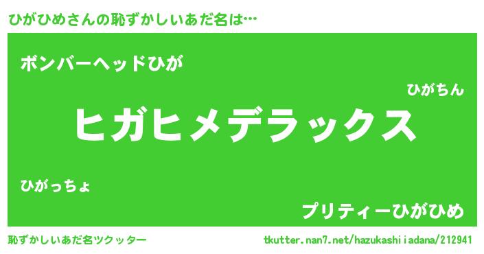 | 意味不明あだ名 | 『住所不定無職ひがひめ(10歳)』 |