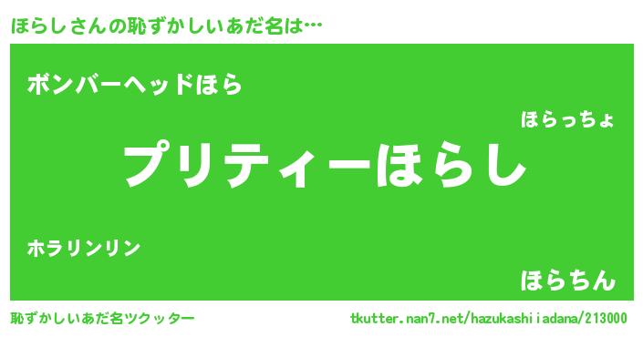 | ヒーロー風カッコイイあだ名 | 『スーパーホラシ』『慈愛の使者ほらし』 |