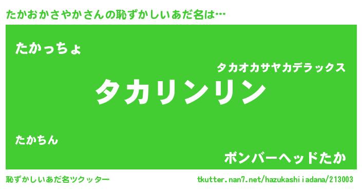 | ヘコむあだ名 | 『たか太郎』『なまこ酢』 |