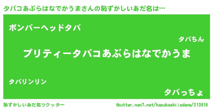 | ヒーロー風カッコイイあだ名 | 『スーパータバコアブラハナデカウマ』 |