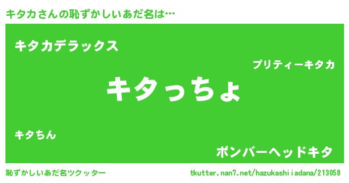 | 欧米人風あだ名 | 『ダレノガレキタカ』『キタカクリステル』 |