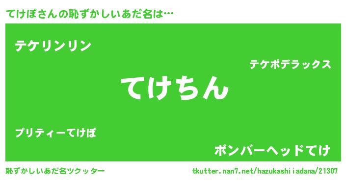 | ヘコむあだ名 | 『てけぽ(笑)』『てけを』『てけもー』 |