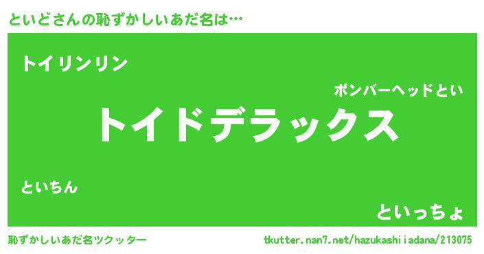 | 意味不明あだ名 | 『住所不定無職といど(4歳)』『自称といど』 |
