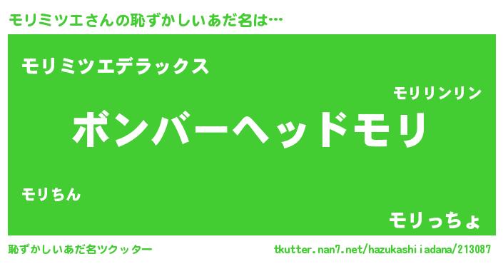 | 意味不明あだ名 | 『住所不定無職モリミツエ(2歳)』 |