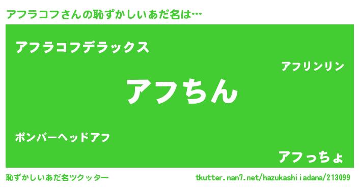 | 意味不明あだ名 | 『永久保存アフラコフ』『自称アフラコフ』 |
