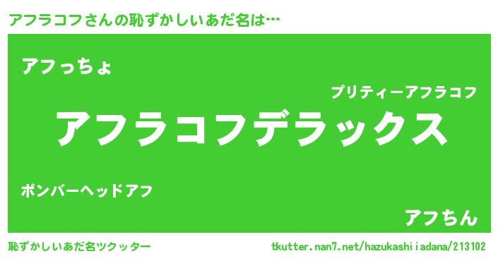 | ポケモン風あだ名 | 『アフキング』『アフセウス』 |