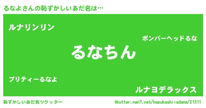 | ヘコむあだ名 | 『るなよ(爆)』『るなぷりん』『牛乳』 |