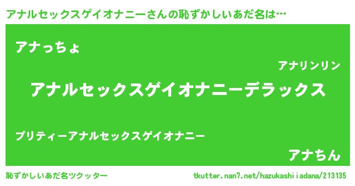 | 意味不明あだ名 | 『住所不定無職アナルセックスゲイオナニー(86歳)』 |