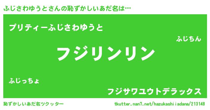 | 男性向けラノベタイトル風あだ名 | 『うちのふじさわゆうとが世界を掌握している!』 |
