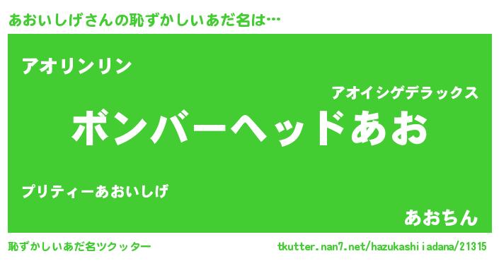 | ヘコむあだ名 | 『あおを』『あおいしげ(震え声)』 |
