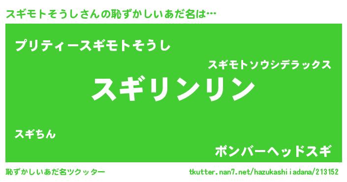 | 意味不明あだ名 | 『とにかく怪しいスギモトそうし』 |