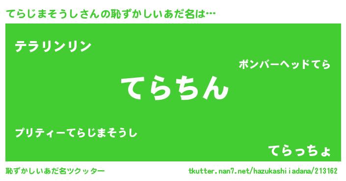| ヘコむあだ名 | 『てらじまそうし(爆)』『てら太郎』 |