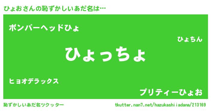 | 意味不明あだ名 | 『ひょおフォーエバー』『ペロリンひょお』 |