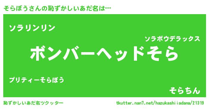 | ヒーロー風カッコイイあだ名 | 『慈愛の使者そらぼう』『仮面ソラダー』 |