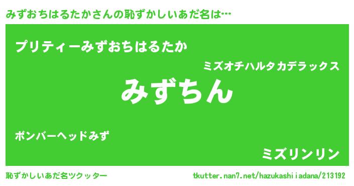 | 意味不明あだ名 | 『永久保存みずおちはるたか』 |