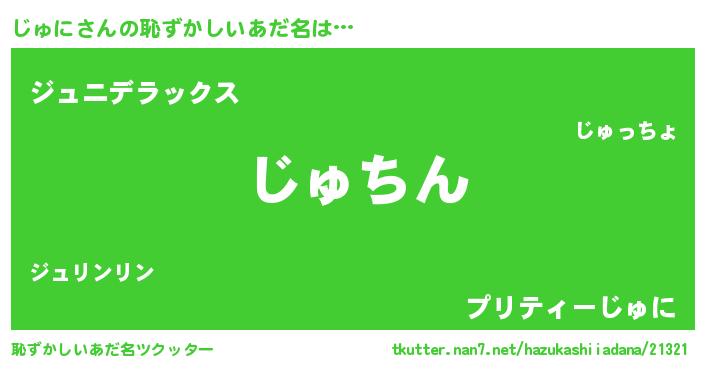 | ヘコむあだ名 | 『じゅに(苦笑)』『じゅにゅー』 |