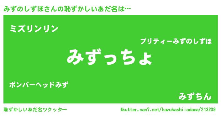 | 意味不明あだ名 | 『みずのしずほフォーエバー』 |