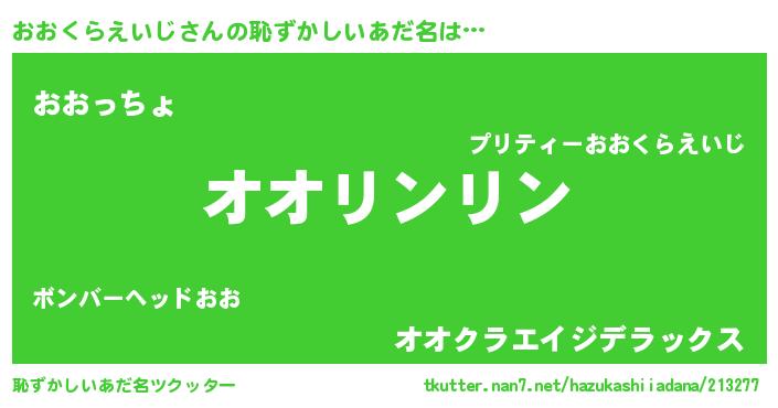 | 男性向けラノベタイトル風あだ名 | 『おおくらえいじの嫁は女の子じゃないと思った?』 |