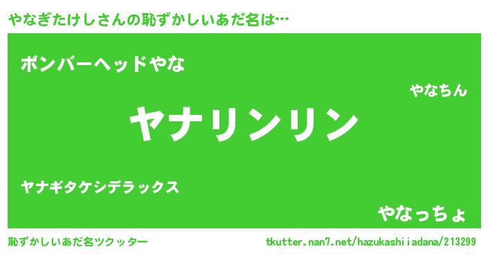 | ポケモン風あだ名 | 『ヒヤナギタケシ』『メロヤッナ』 |