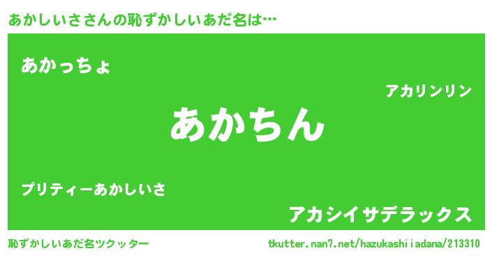 | 意味不明あだ名 | 『永久保存あかしいさ』『自称あかしいさ』 |