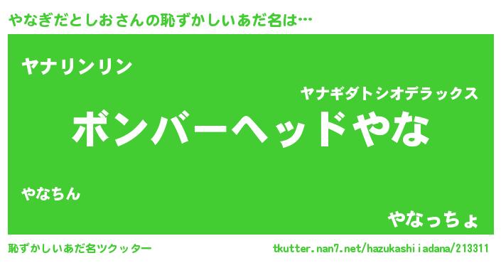 | 男性向けラノベタイトル風あだ名 | 『やなぎだとしおに滅ぼされるだけの簡単なお仕事です』 |