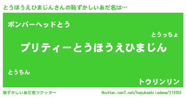 | 女子向けラノベタイトル風あだ名 | 『シンデレラとうほうえひまじん家の靴箱館』 |