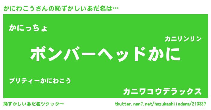 | 男性向けラノベタイトル風あだ名 | 『カニワコウスレイヤー』 |