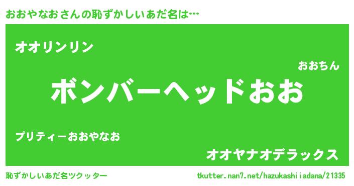 | 男性向けラノベタイトル風あだ名 | 『転生したらおおやなおだった件』 |
