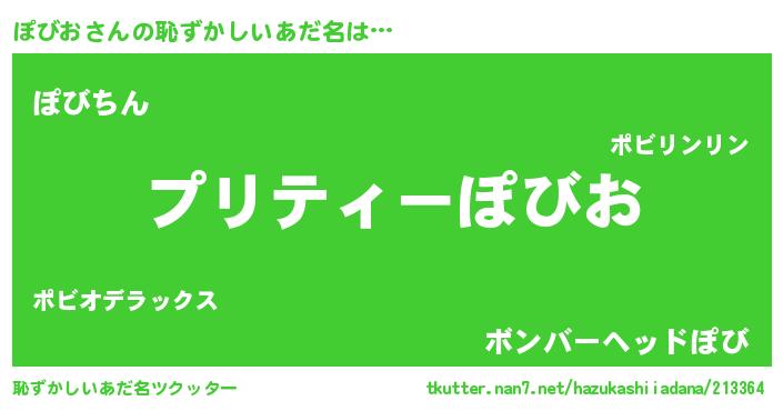 | 男性向けラノベタイトル風あだ名 | 『魔弾の王とぽびお』『ぽびおの憂鬱』 |