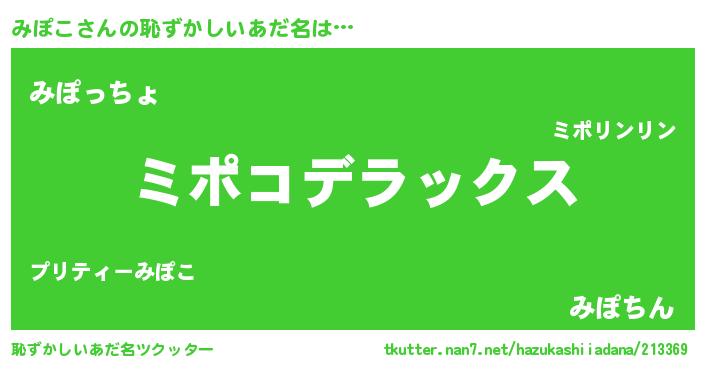 | ヒーロー風カッコイイあだ名 | 『最強戦士ミポコ』『ウルトラみぽこマン』 |