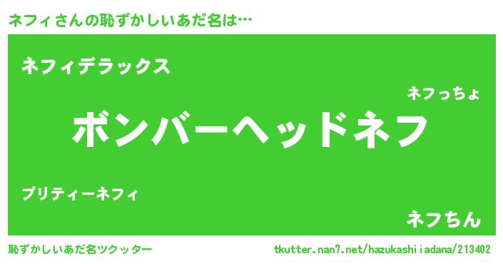 | ヘコむあだ名 | 『ネフィ(苦笑)』『牛乳』『ネフっ子』 |