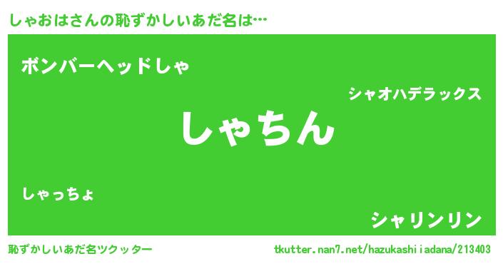 | 意味不明あだ名 | 『永久保存しゃおは』『自称しゃおは』 |