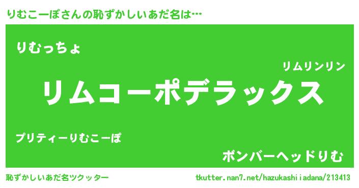 | 意味不明あだ名 | 『自称りむこーぽ』 |