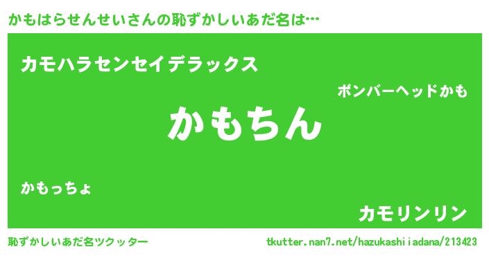 | 胡散臭い通販商品みたいなあだ名 | 『来世でも幸せになれる健康食品…その名も「かもはらせんせい」』 |