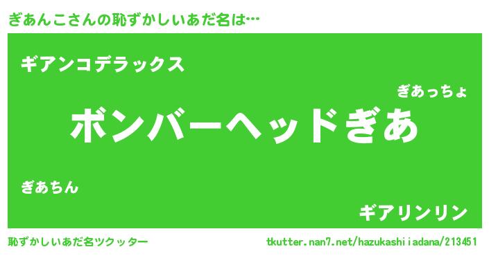 | 欧米人風あだ名 | 『ダニエルぎあんこ』『ウサインぎあんこ』 |